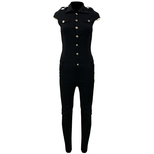 You can't be more elegant and sexy than in this jumpsuit. Features mysterious and flattering black color,with short sleeve