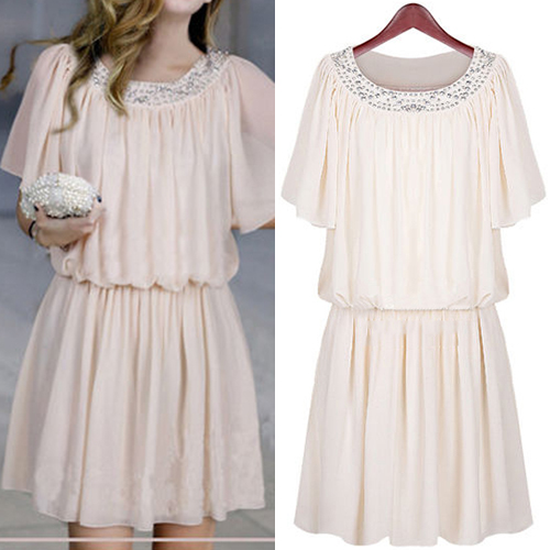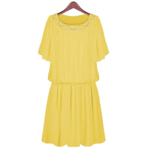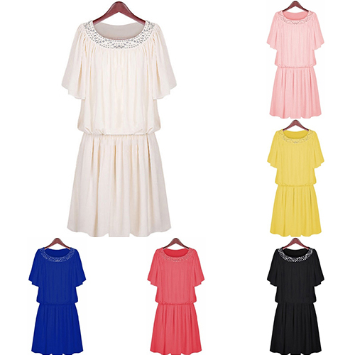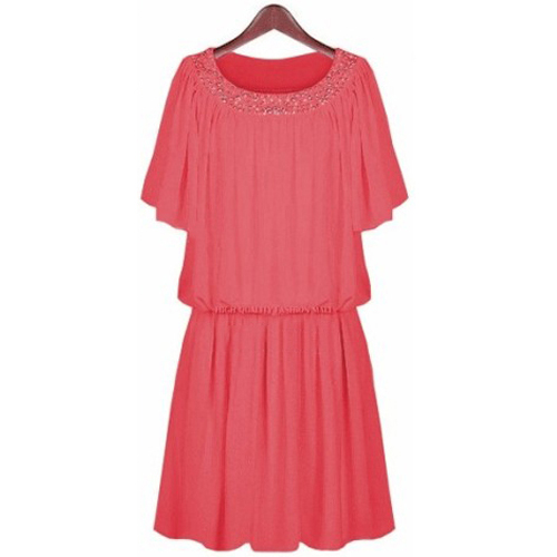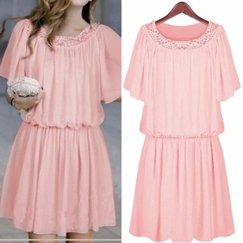 color tone complemented with short sleeve,round neck,an elastic waist and cozy fabric,this dress can keep you