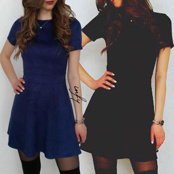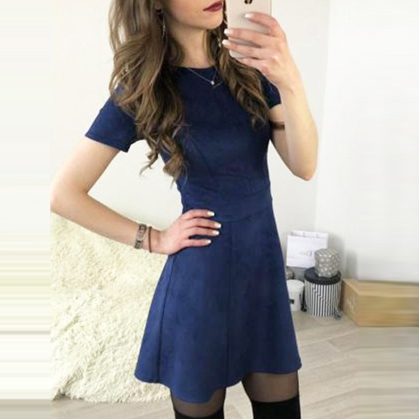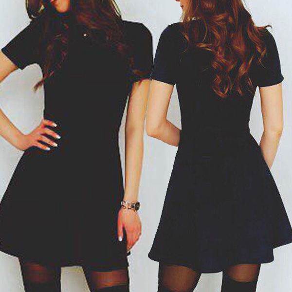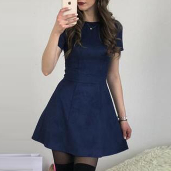 Comes with a solid color,accompanied with short sleeve,round neck and an A-line silhouette,