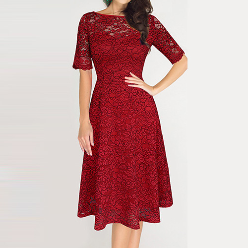 Look exceptionally stunning when you slip into this breathtaking lace dress. Styled with