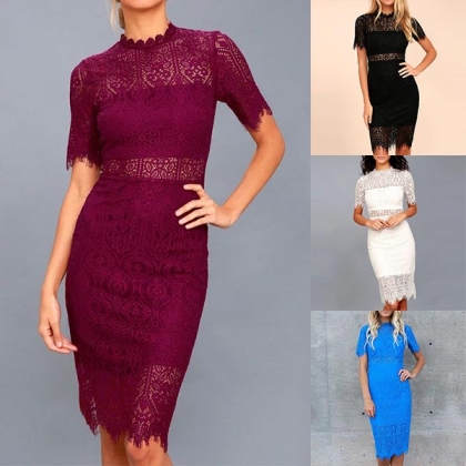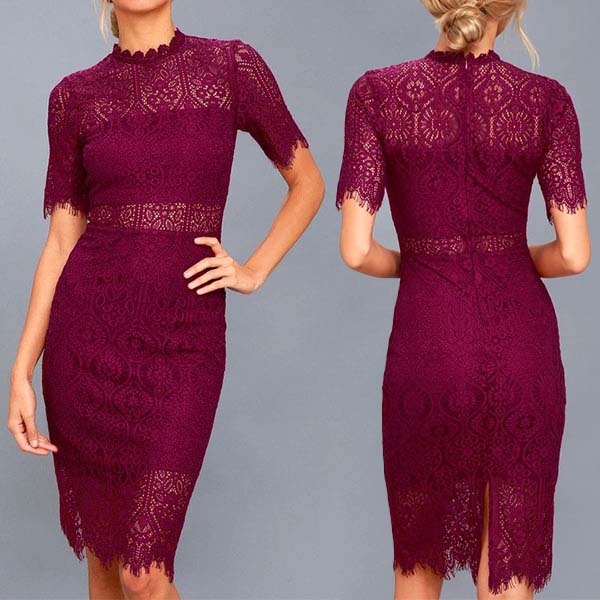 this delicate lace dress. The solid color design aims to give you an elegant vibe,while the fit silhouette