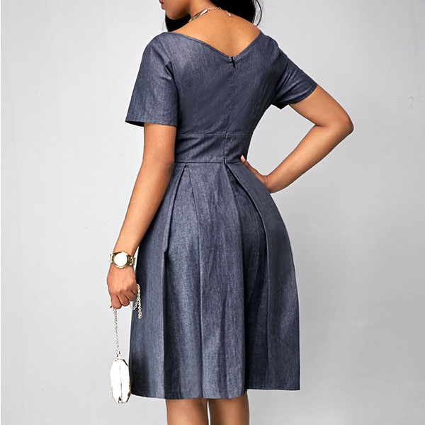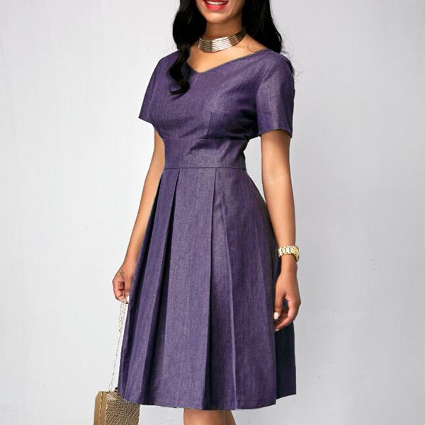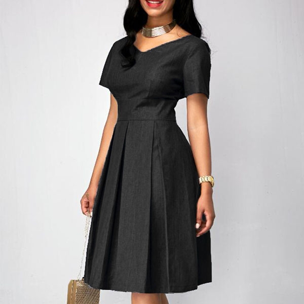 this delicate dress. It boasts a solid color,with short sleeve,v-neck and high waist design,this is a dress