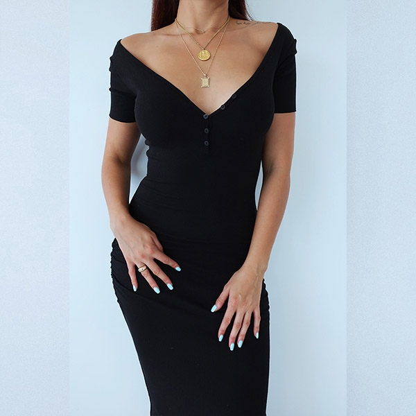 Solid color tone design makes this piece look simple,generous yet elegant. Finished with short sleeve,