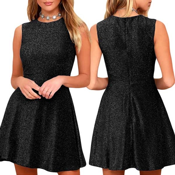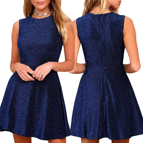 with sleeveless,round neck,high waist and an A-line silhouette,this is a dress which can take you to