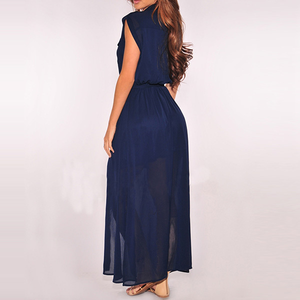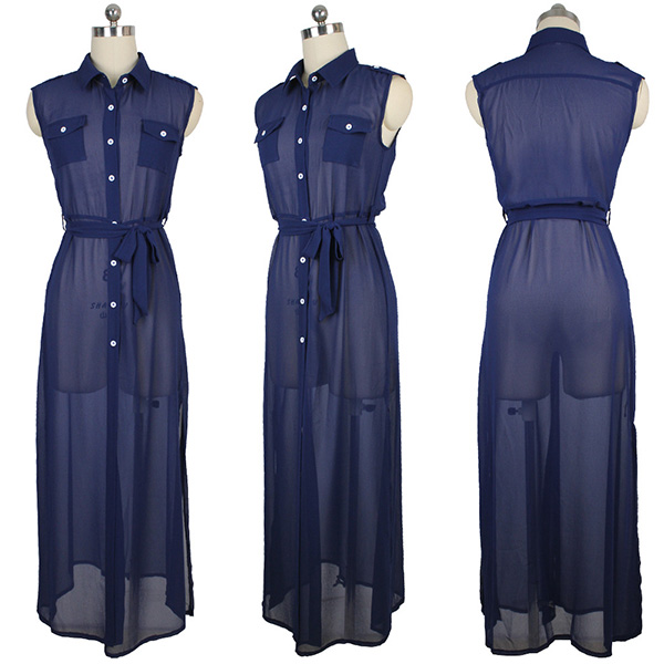 styled with sleeveless,POLO collar,slit hem and a maxi length,this wonderful piece can create a charming look for you.