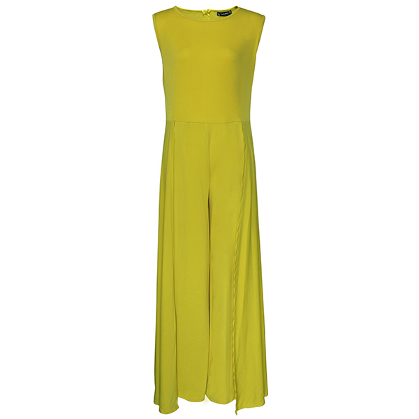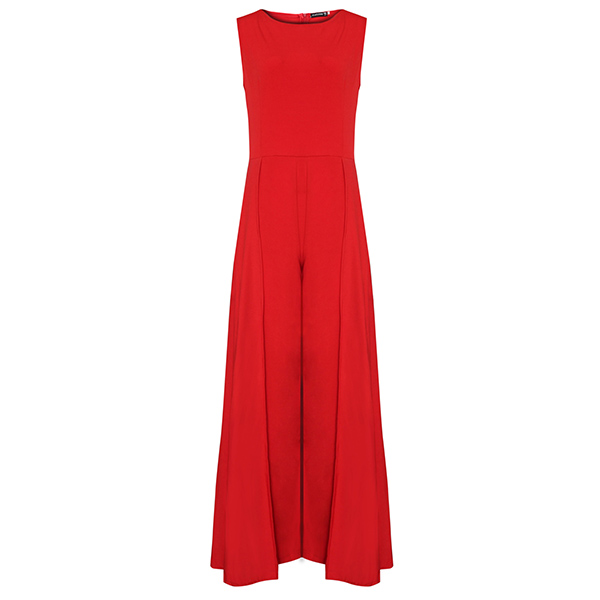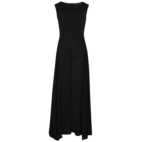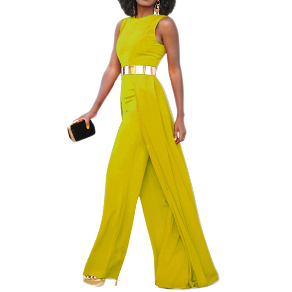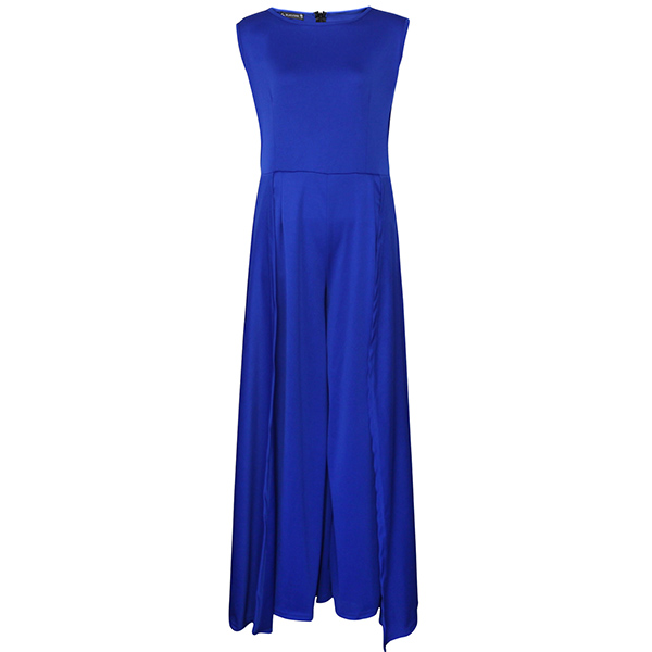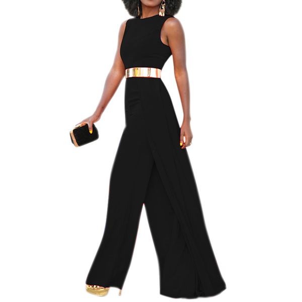 solid color,designed with sleeveless,round neck,high waist and wide-leg silhouette,elegant and refined.