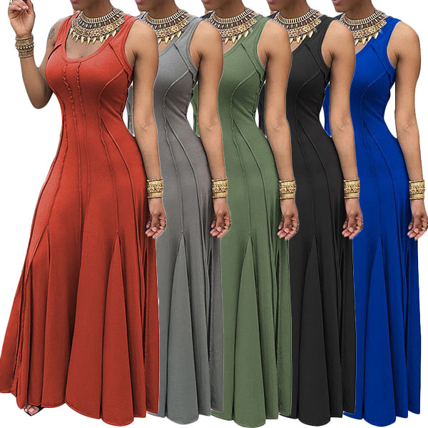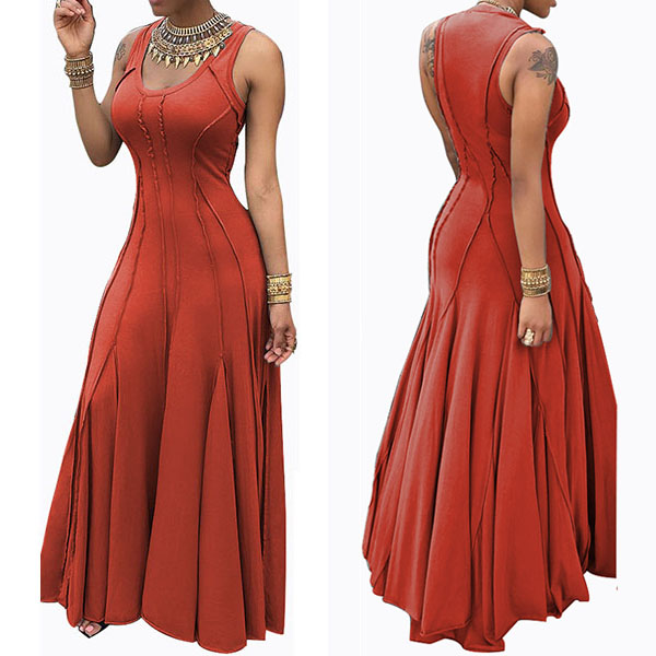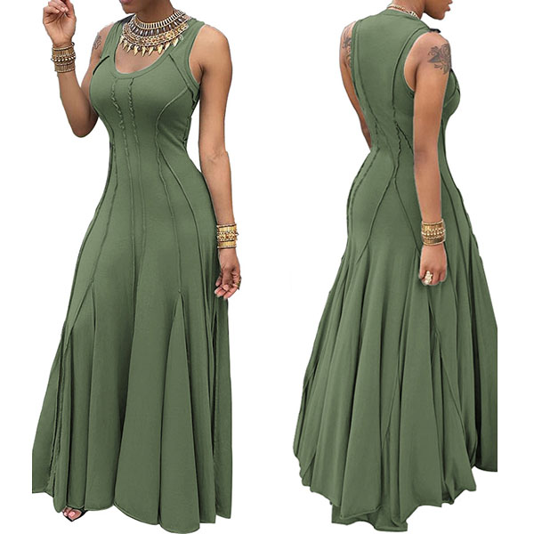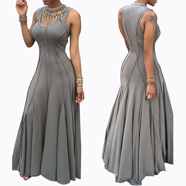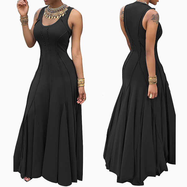 and noble vibe,while its sleeveless,round neck,high waist and maxi length design makes this dress delicate and charming.