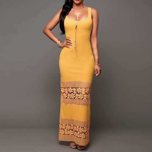 You can keep elegant and charming from day to night in this maxi dress. Solid color style,with sleeveless,round neck,a maxi