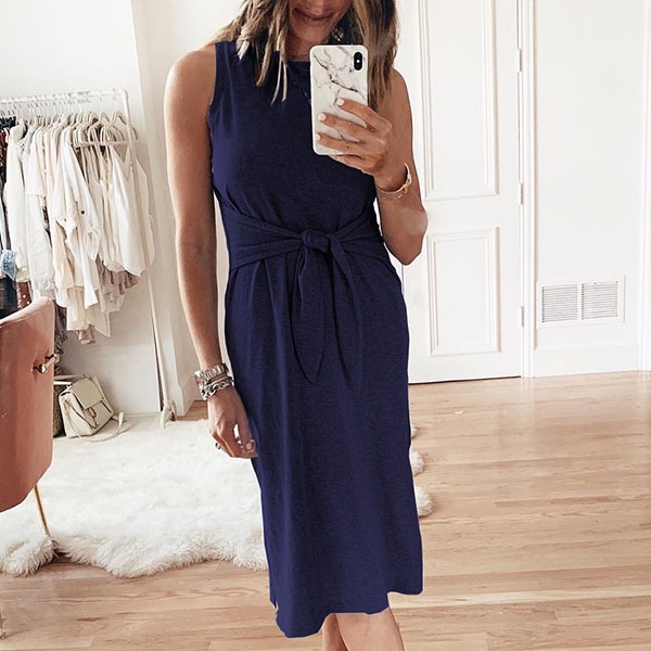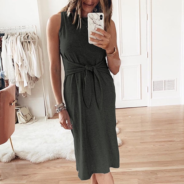 while the lace-up design at the waist part can better highlight your slender figure. Finished with sleeveless