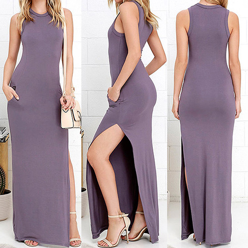with sleeveless,round neck,slit hem and a maxi length,delicate and stylish. Save this dress for