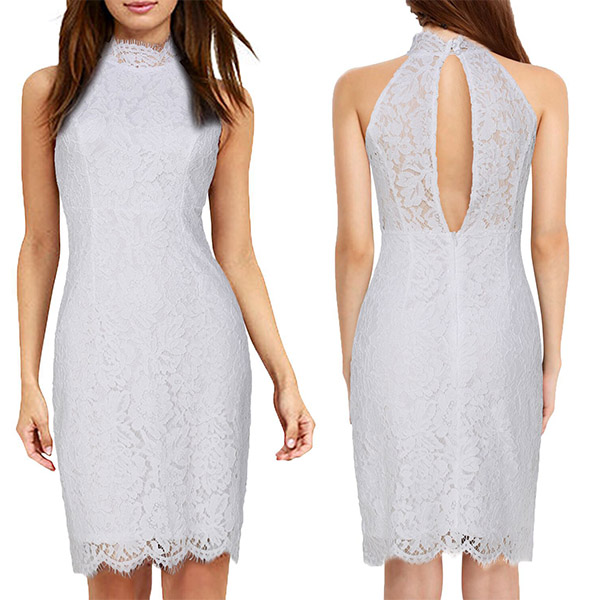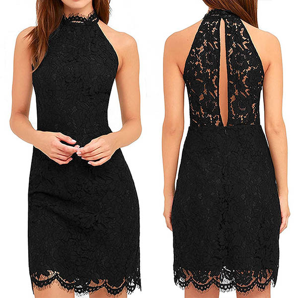 elegant lace dress! Crafted in a solid color,sleeveless,backless and a fit silhouette,this lace dress can