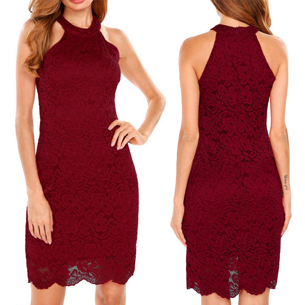 with sleeveless,round neck and a fit silhouette,refined and elegant. This lace dress can give you an easy transition from daytime