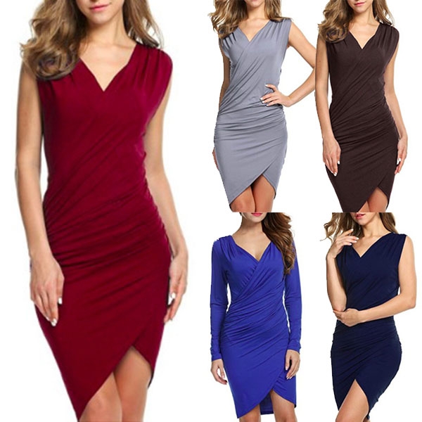 silhouette design will showcase your figure,while the v-neck and irregular hem design will help boost