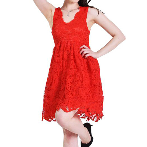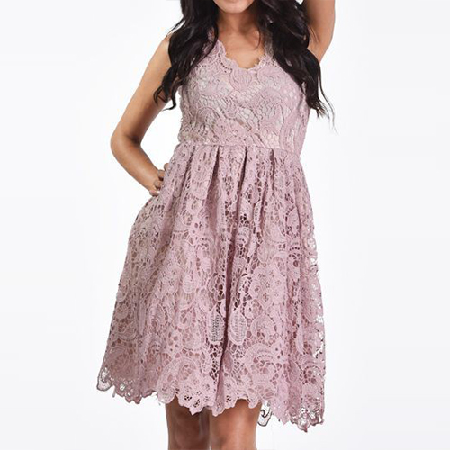 with sleeveless,v-neckline and a clean silhouette,this lace dress can give you an easy transition from daytime work to night gatherings.