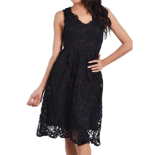 Elegant Solid Color Sleeveless V-neck Lace Dress