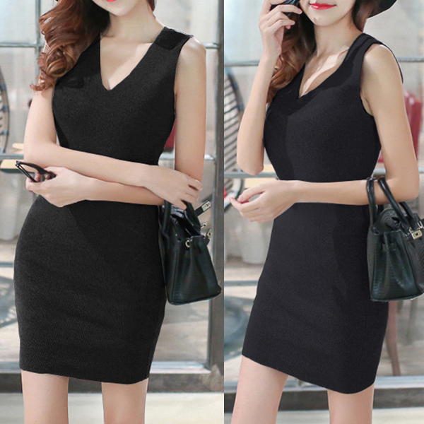 That's why we love this knit dress. Solid color style,designed with sleeveless,v-neck and a fit silhouette,this dress