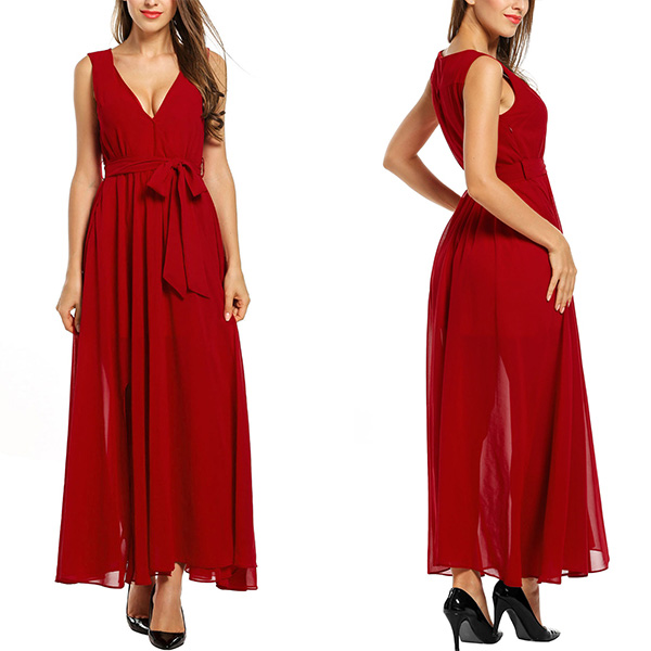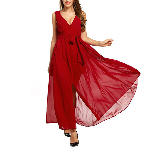 solid color,finished with sleeveless,v-neck,high waist and slit hem design,this piece is your perfect
