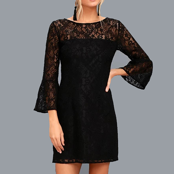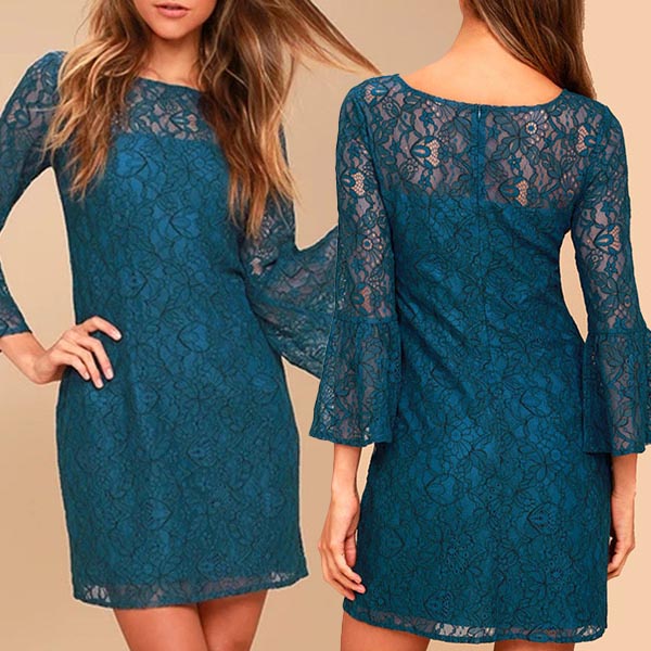 You look so elegant and charming when you don this delicate lace dress. It comes with a solid color,