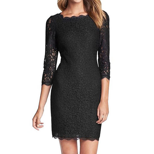 night party or romantic dinner. Thanks to its v back, 3/4 sleeve and slim silhouette, your graceful and