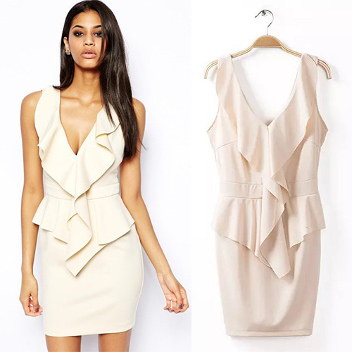 You look so elegant and charming in this dress. Solid color style,with sleeveless and