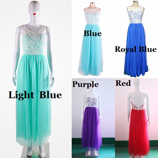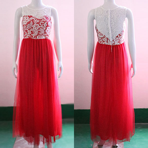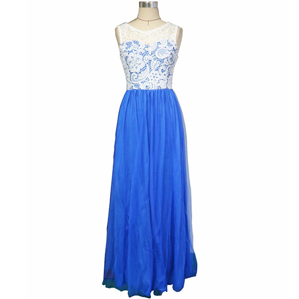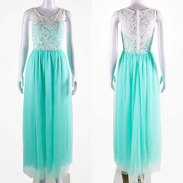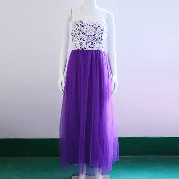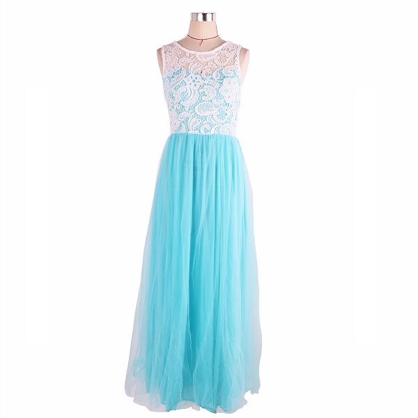 This gauze dress is finished with sleeveless,round neck and lace spliced design,which can add some elegant and