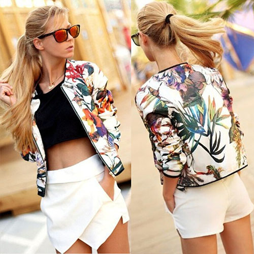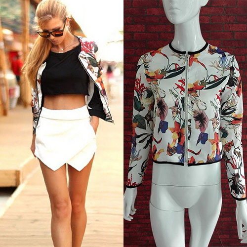 be your intention. Features all over floral print,with long sleeve and front zipper design. In