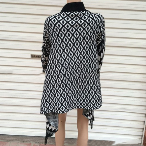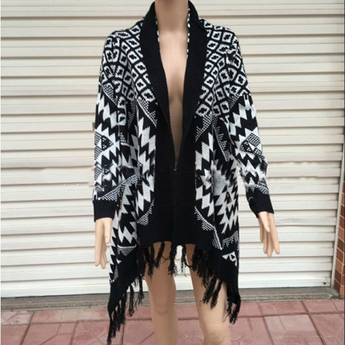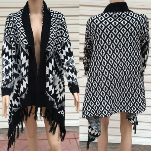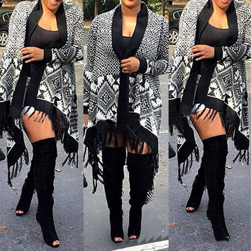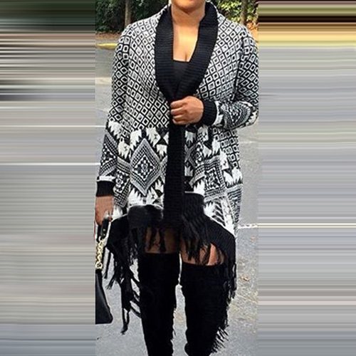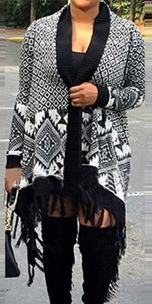 printed style,with long sleeve,irregular tassel hem and an open-front,chic and stylish. A perfect definition