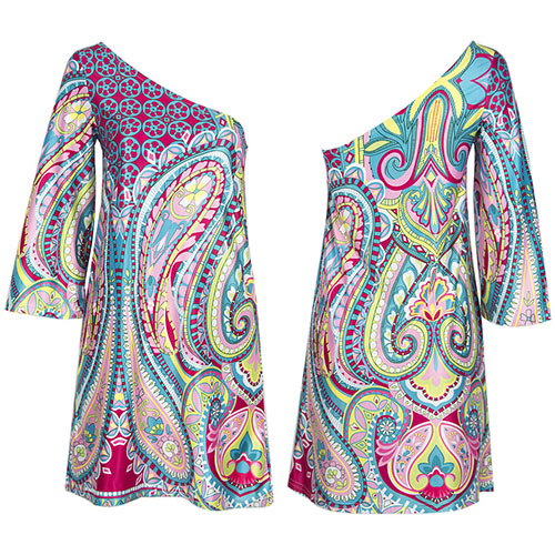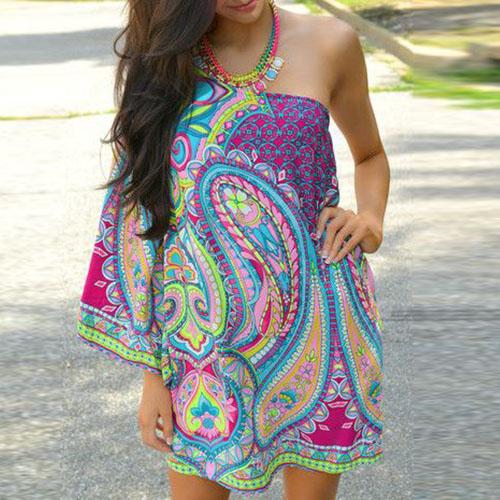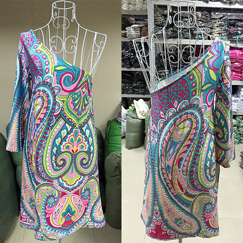 One-shoulder style,with ethnic style printed pattern,sexy and charming. Crafted from soft