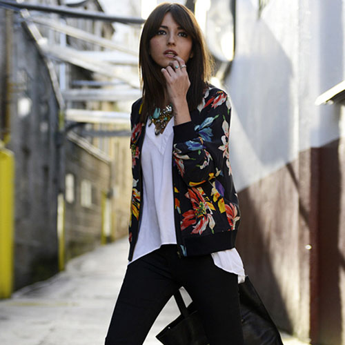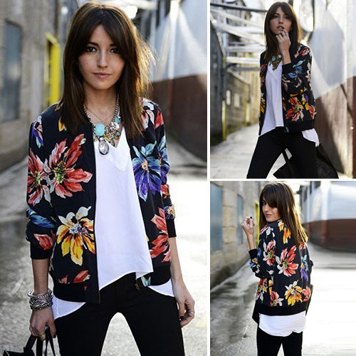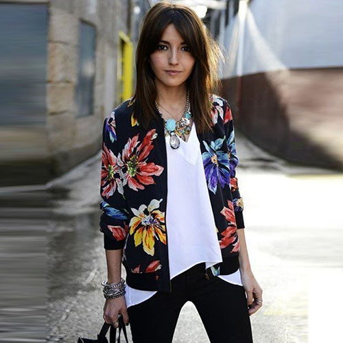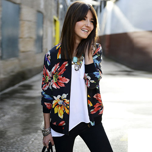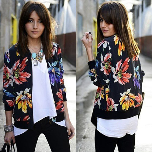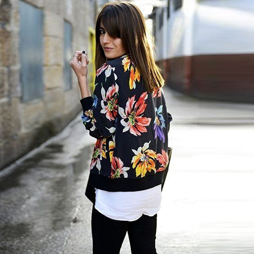 printed,with long sleeve,stand collar and front zipper closure. It is a must-have item is some