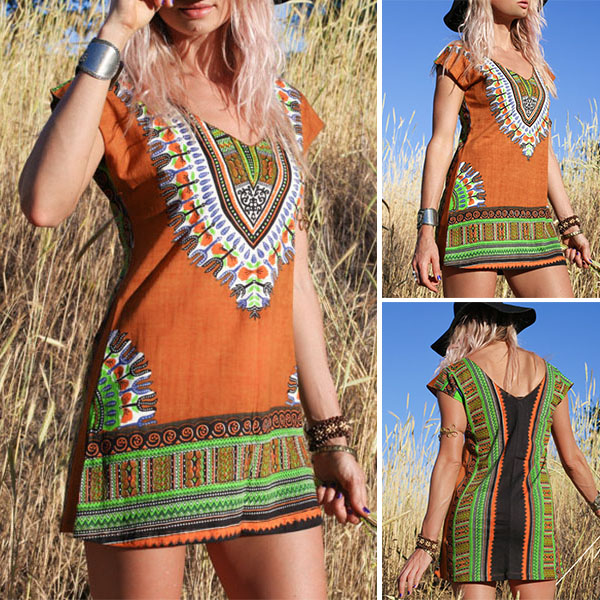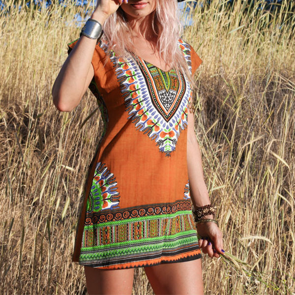 Simple yet stylish,this dress is just what you need on a summer's weekend. Its ethnic style printed design makes this piece