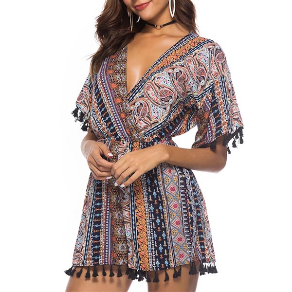 This wonderful rompers is designed with ethnic style printed pattern,chic and eye-catching. Meanwhile,