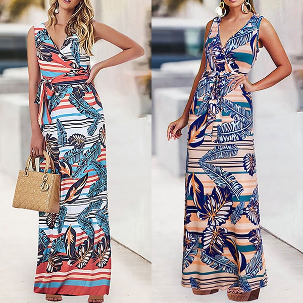 with sleeveless and v-neck design,the high waist and maxi length design can showcase your slender figure.