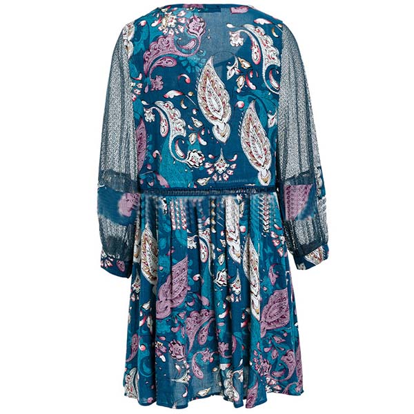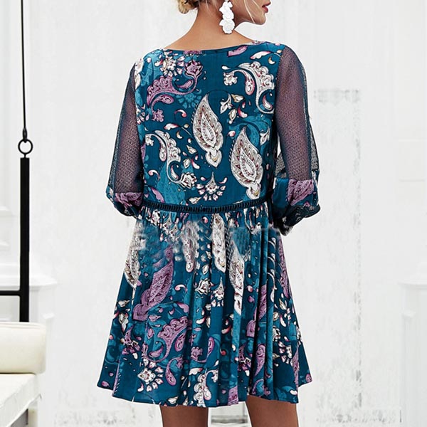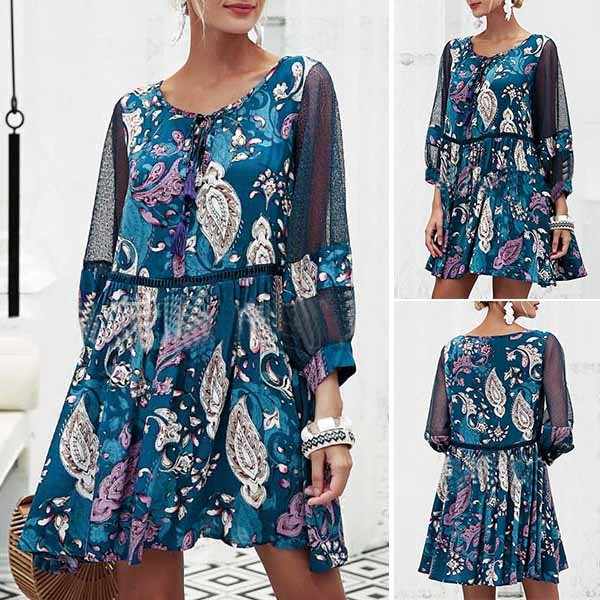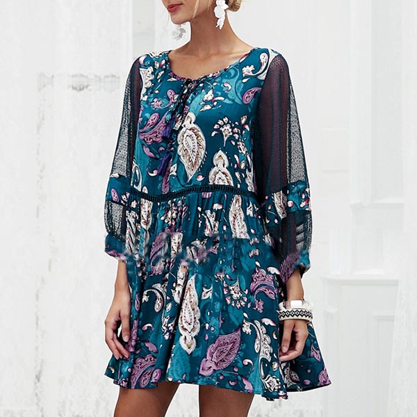 Designed with chic and fashionable printed pattern,the 3/4 trumpet sleeve and lace-up v-neck design