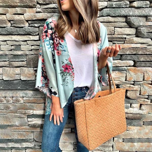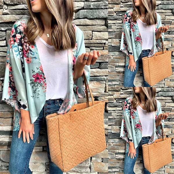 Features chic printed pattern,finished with 3/4 sleeve and an irregular hem,this piece