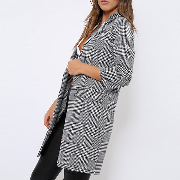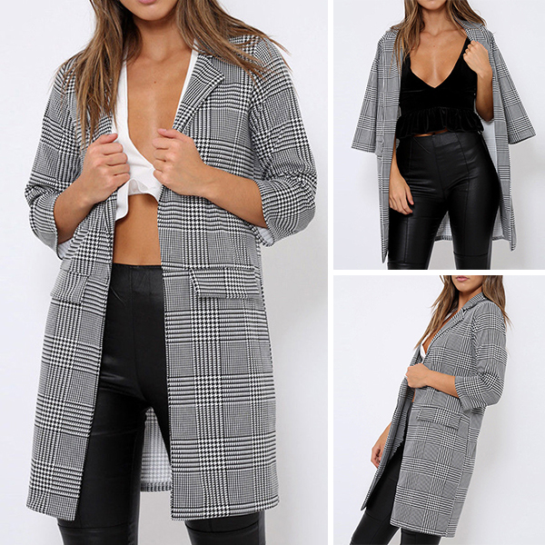 Plaid element will never out of style. So we suggest you this plaid coat. It is styled with 3/4 sleeve,notched lapel
