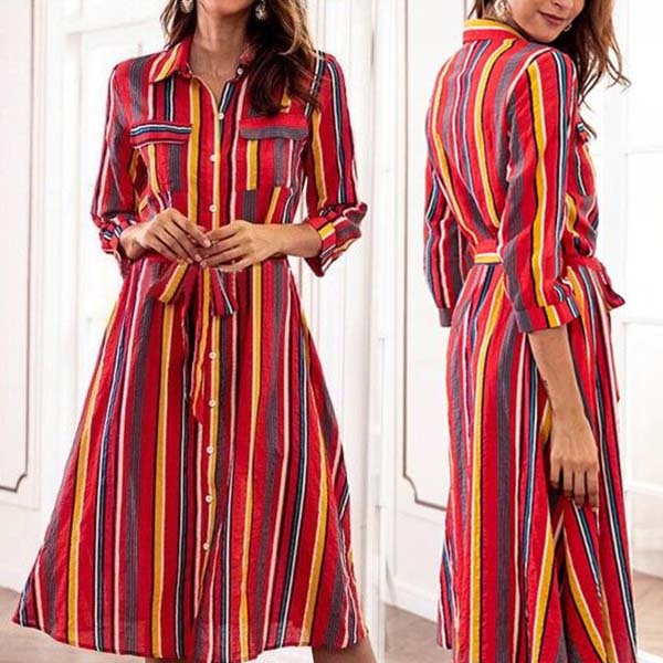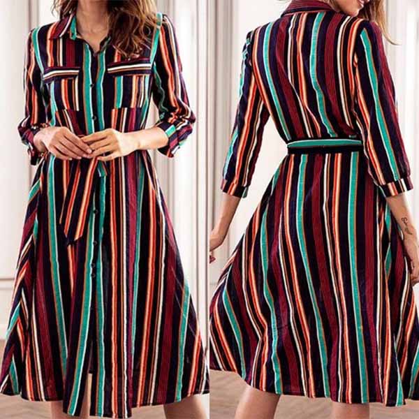 Give your style an instant boost with this shirt dress. The colorful striped design makes this piece look