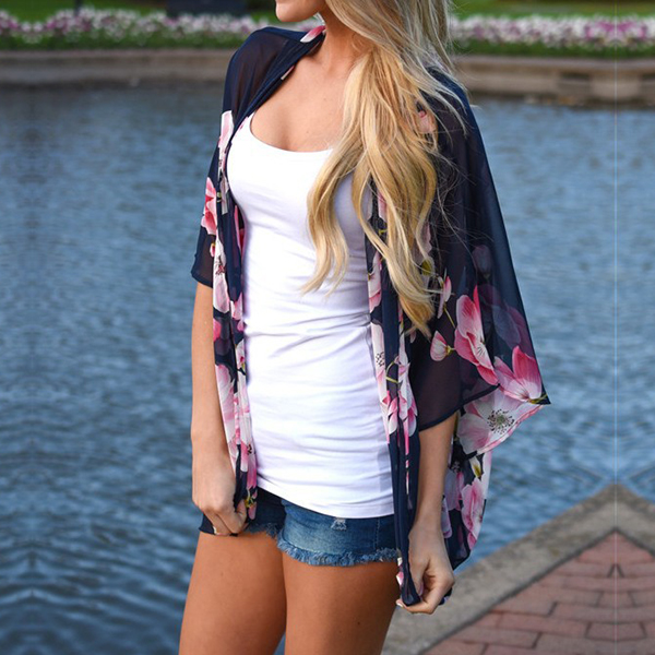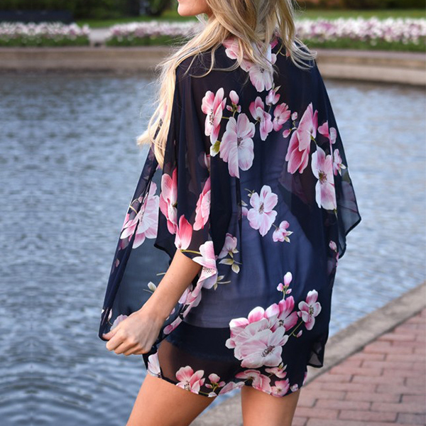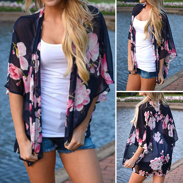Designed with 3/4 sleeve,soft,breezy chiffon fabric and eye-catching printed pattern,this chiffon cardigan is a must-have