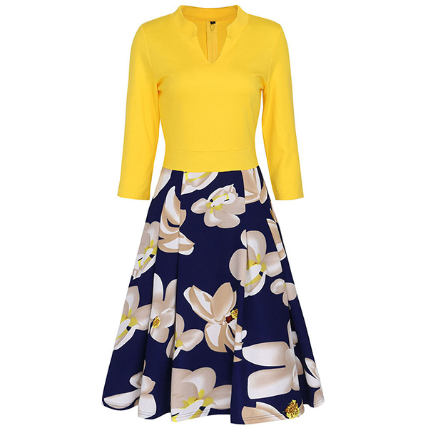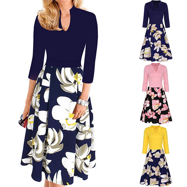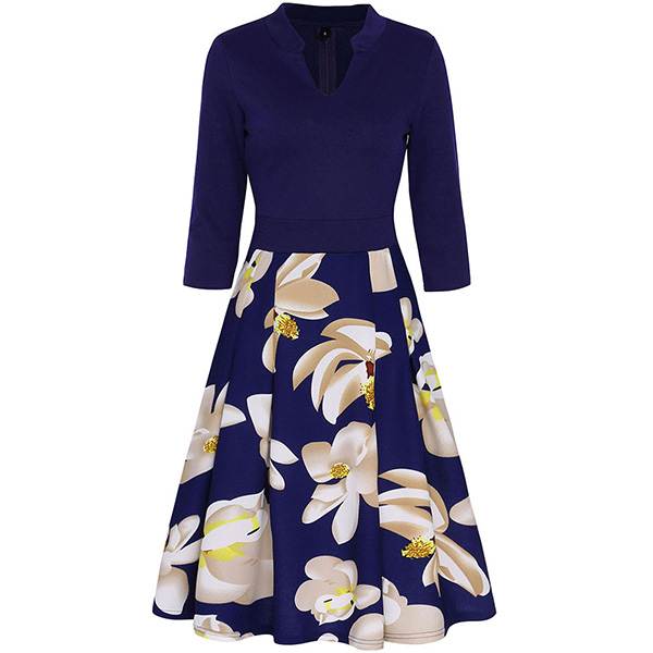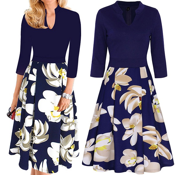 Finished with 3/4 sleeve,v-neck and printed spliced hem,this dress can make you look effortless stylish and