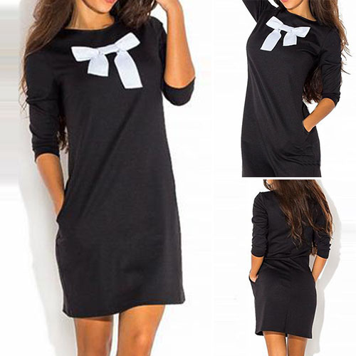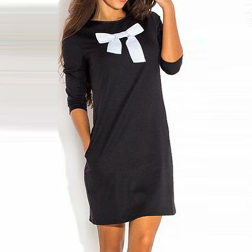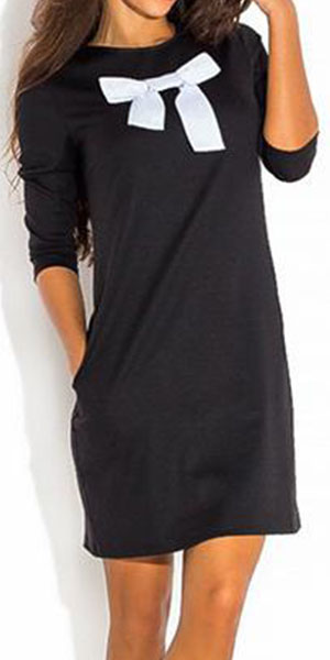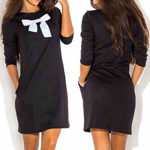 and cozy fabric,with a relaxed silhouette,this dress can give you an all-day comfort. And its bowknot