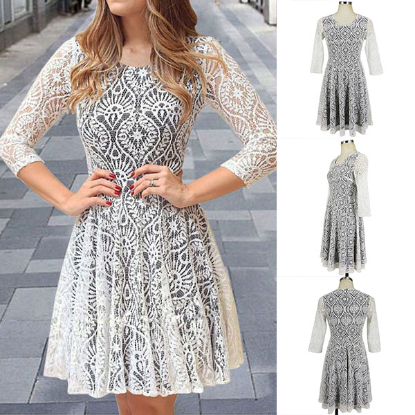It is styled with 3/4 sleeve,round neck and a clean silhouette,this lace dress knows how to portray your