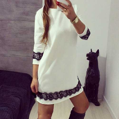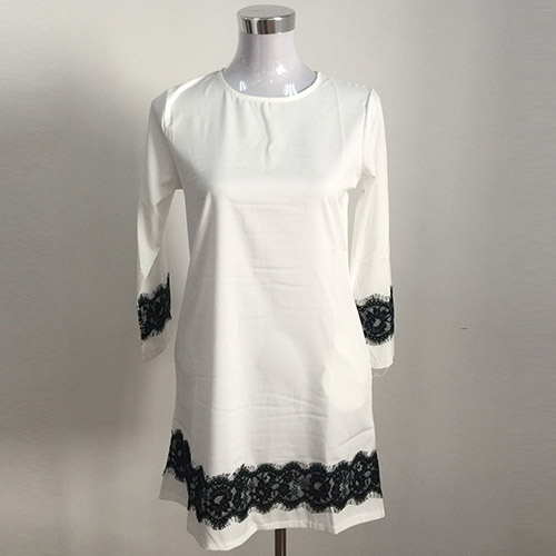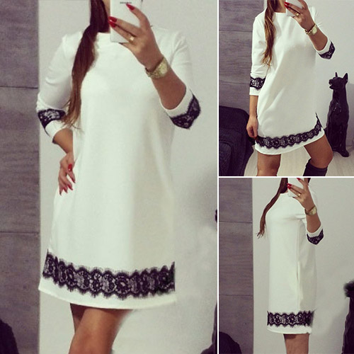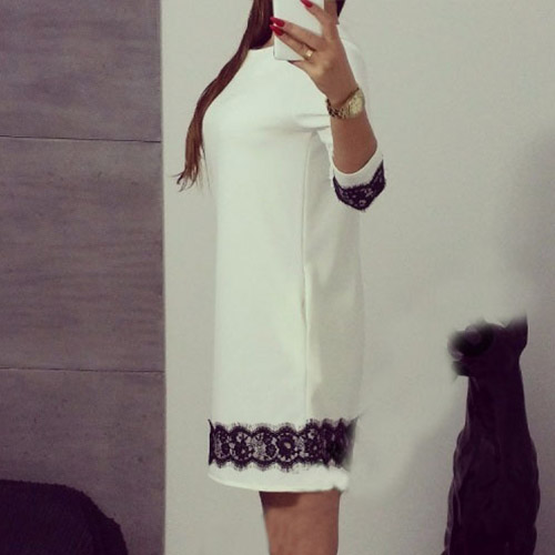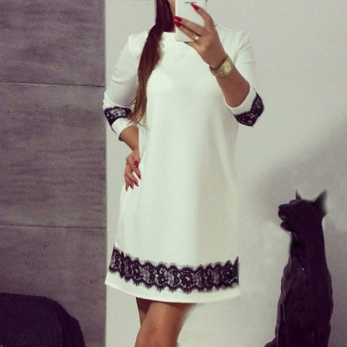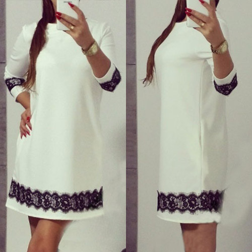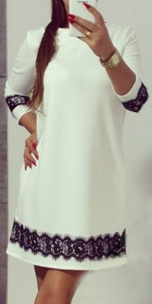 an all-in-one outfit like this dress. Lace spliced style,outfitted with 3/4 sleeve and round neck design,
