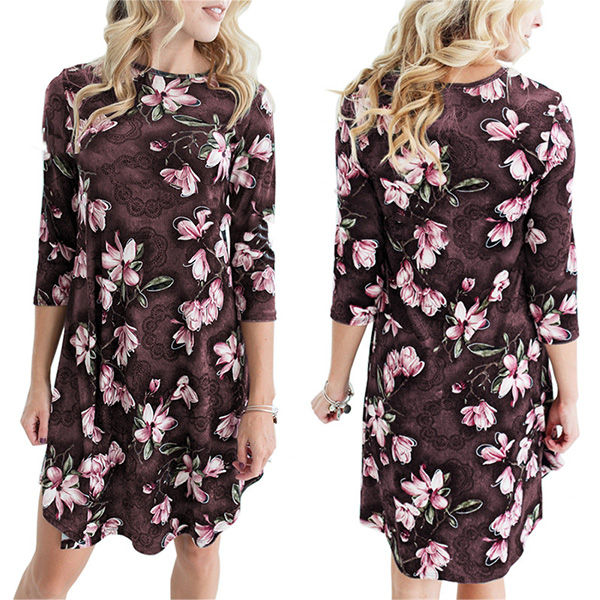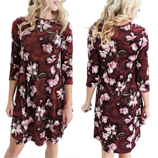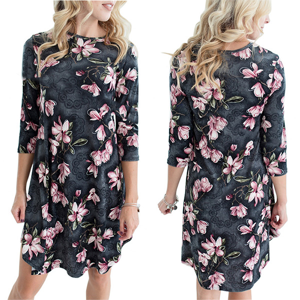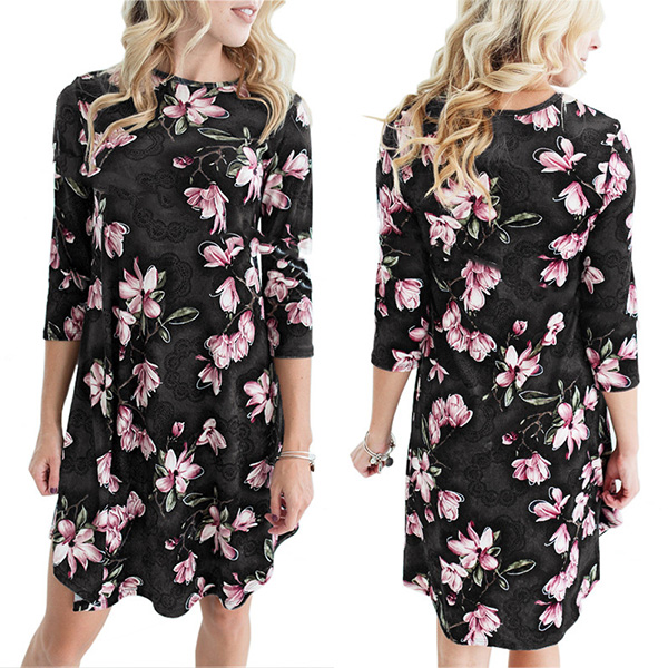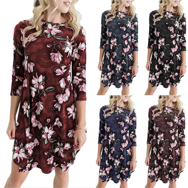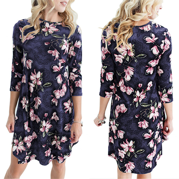 Make your wardrobe more colorful by adding this dress. It features vibrant floral print,finished with 3/4 sleeve
