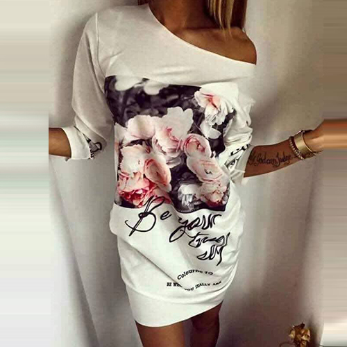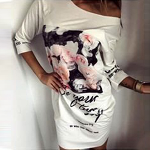 Start your happy day from this dress! Features chic printed pattern,with 3/4 sleeve and round neck
