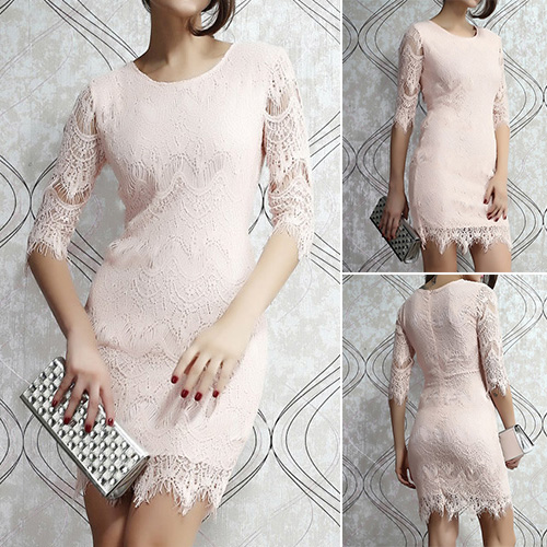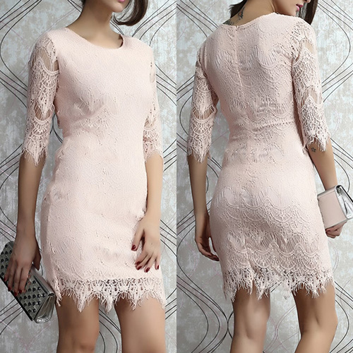 If you are a lace control,then how could you miss this lace dress? It features sweet light pink color,