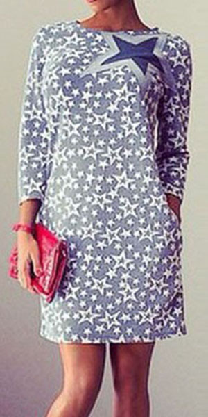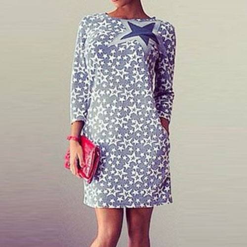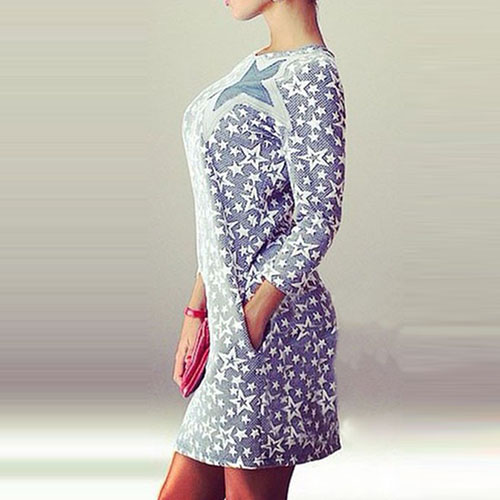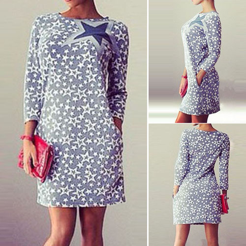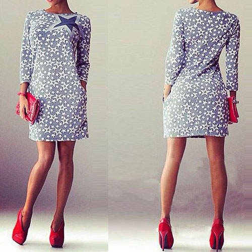 Features chic printed pattern,with 3/4 sleeve,round neck and slim fit design,refined and delicate.