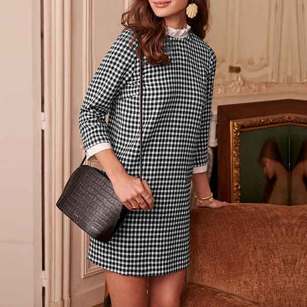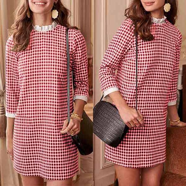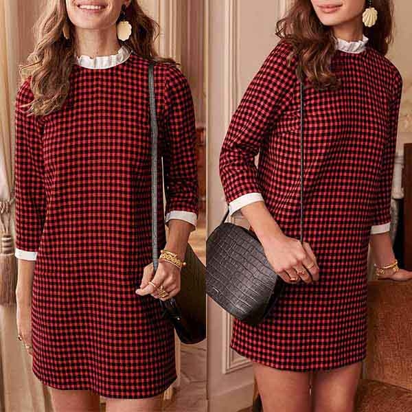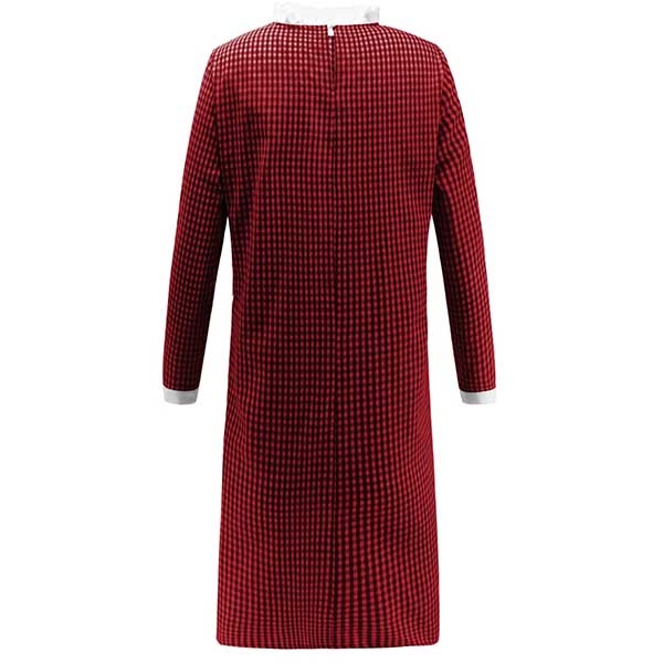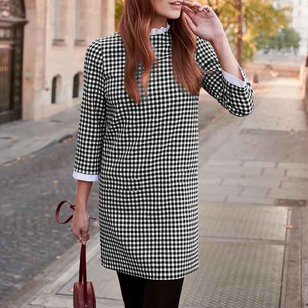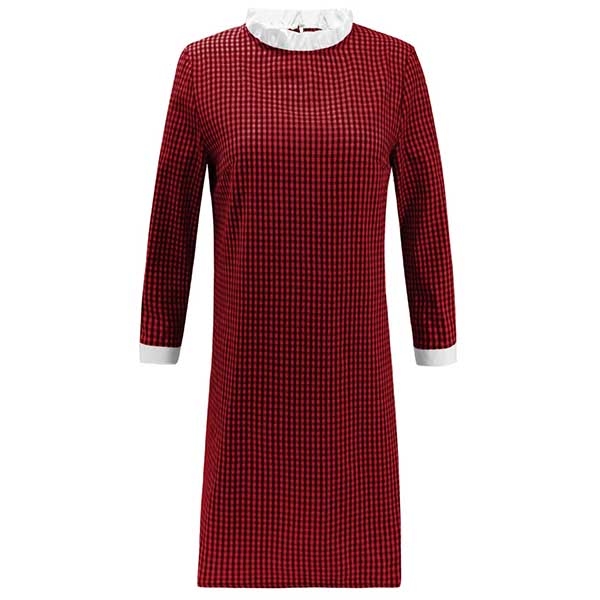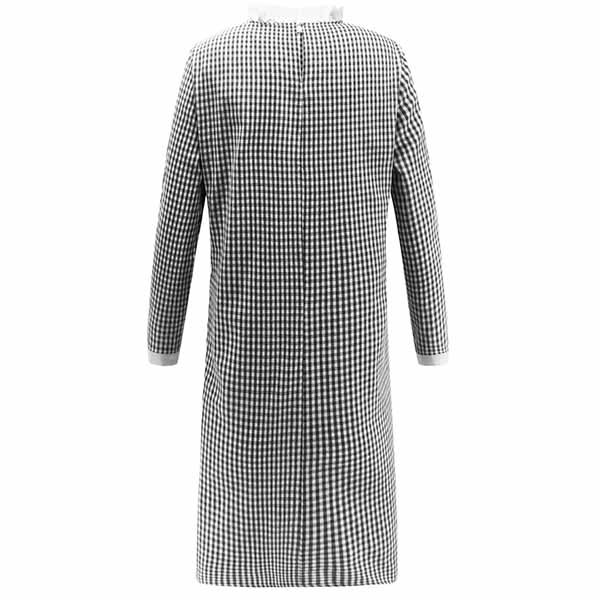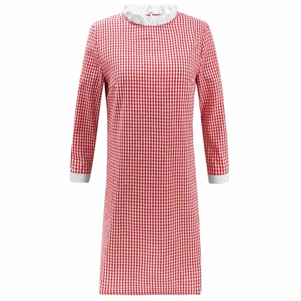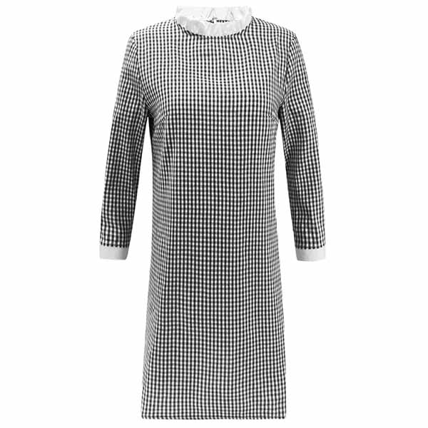 Designed with plaid element,stylish yet popular,while the ruffle stand collar design will enhance your feminine