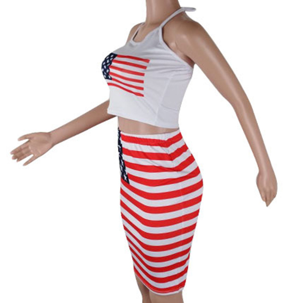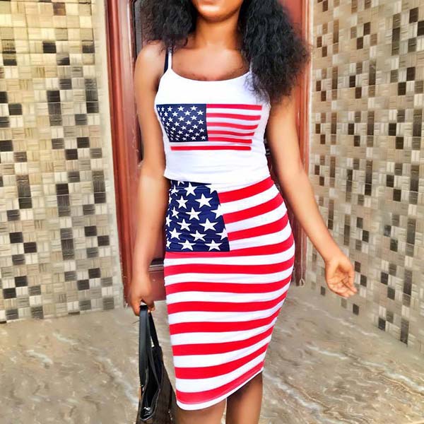 Including a cami top and a high waist skirt,the American flag printed pattern design makes it look so