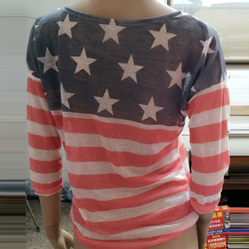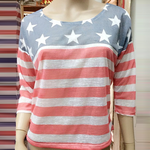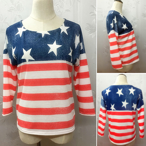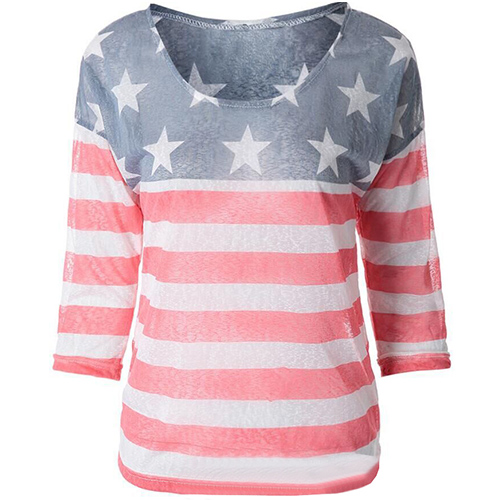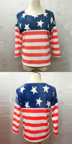 Featuring American flag prints pattern, with round neck and 3/4 sleeve design, this T-shirt is sure to
