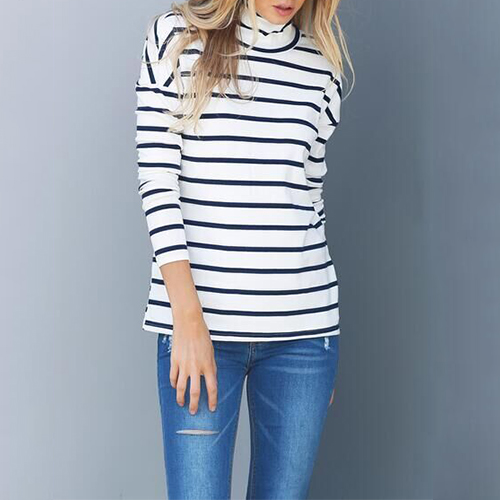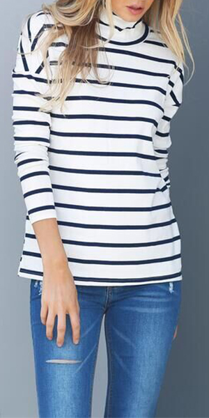 Striped series, utter classic and fashion. Outfitted with turtleneck, long sleeve and striped design,