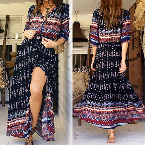 You would be stand out from the crowd if you slip on this dress walking on the beach, it become a beautiful landscape. The dress is decorated